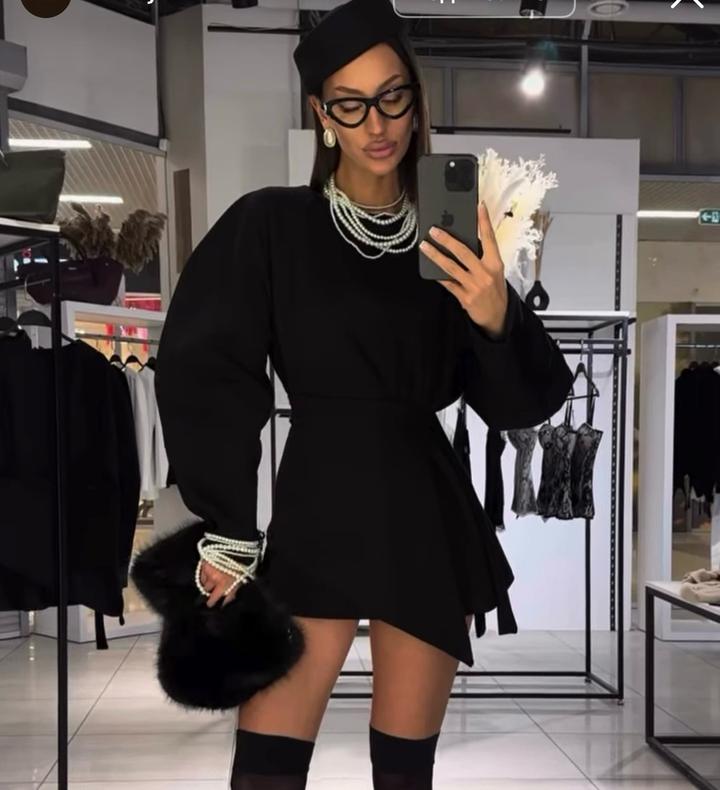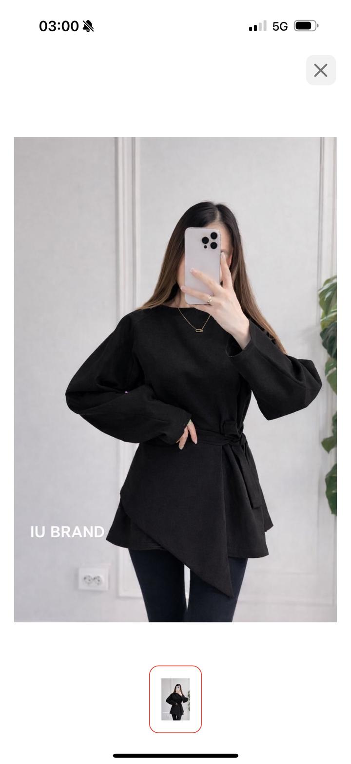 Туника в черном цвете с акцентной баской на талии, размер S. Носила 1 раз. Артикул: 570685