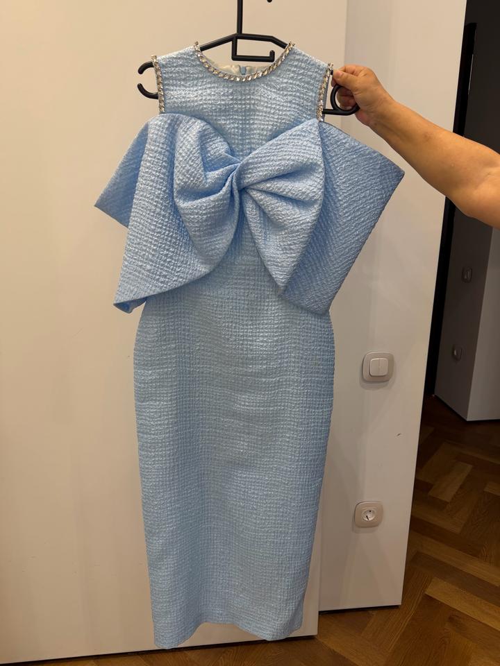 Голубое платье бренда Malli. Одевала 2 раза. Размер стал маленьким. В идеальном состоянии. Почти новый. Имеется чехол. Артикул: 570811