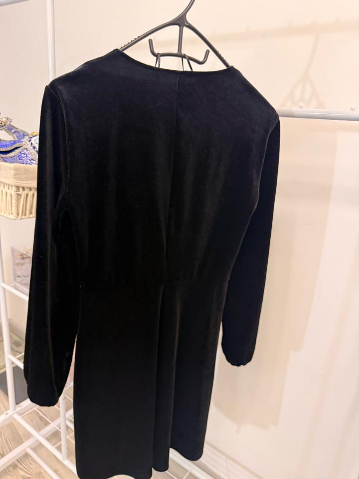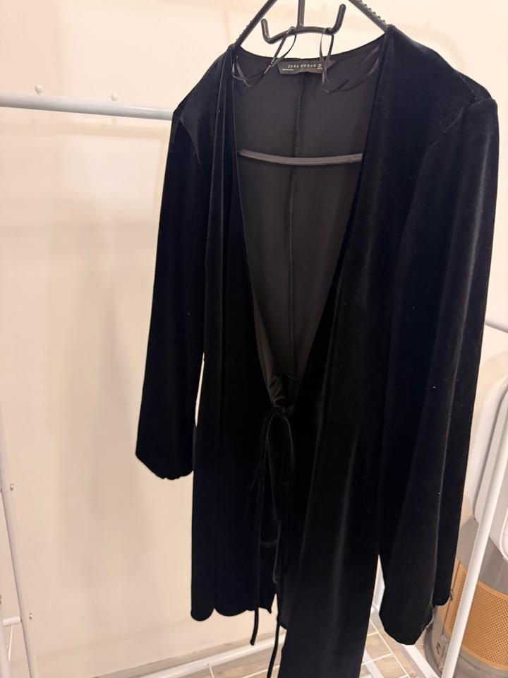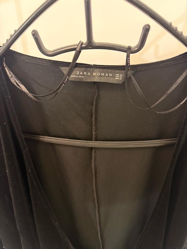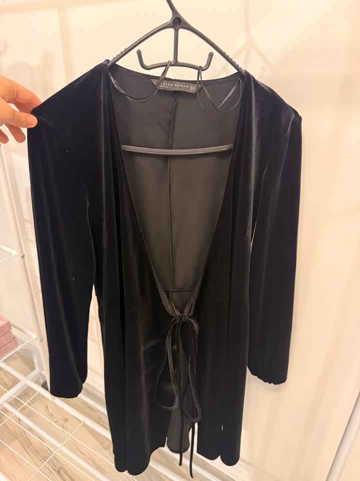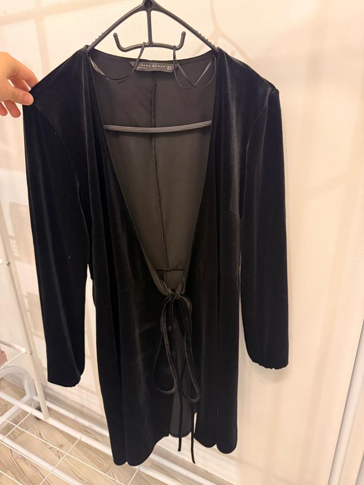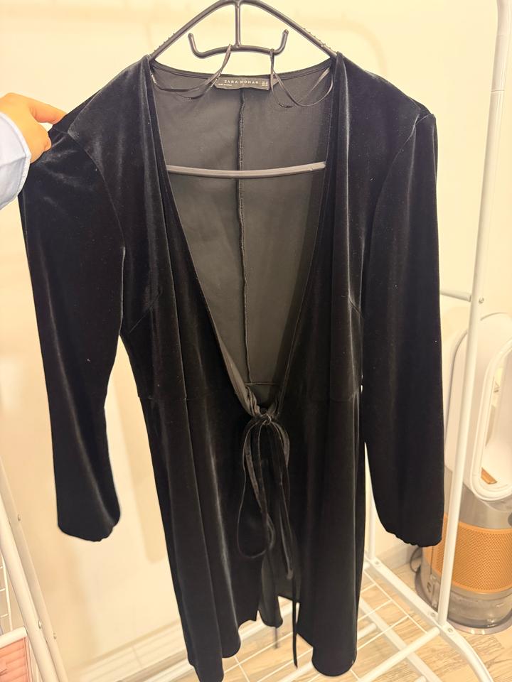 Чёрное бархатное платье-кардиган Zara Woman с завязкой, размер XSS