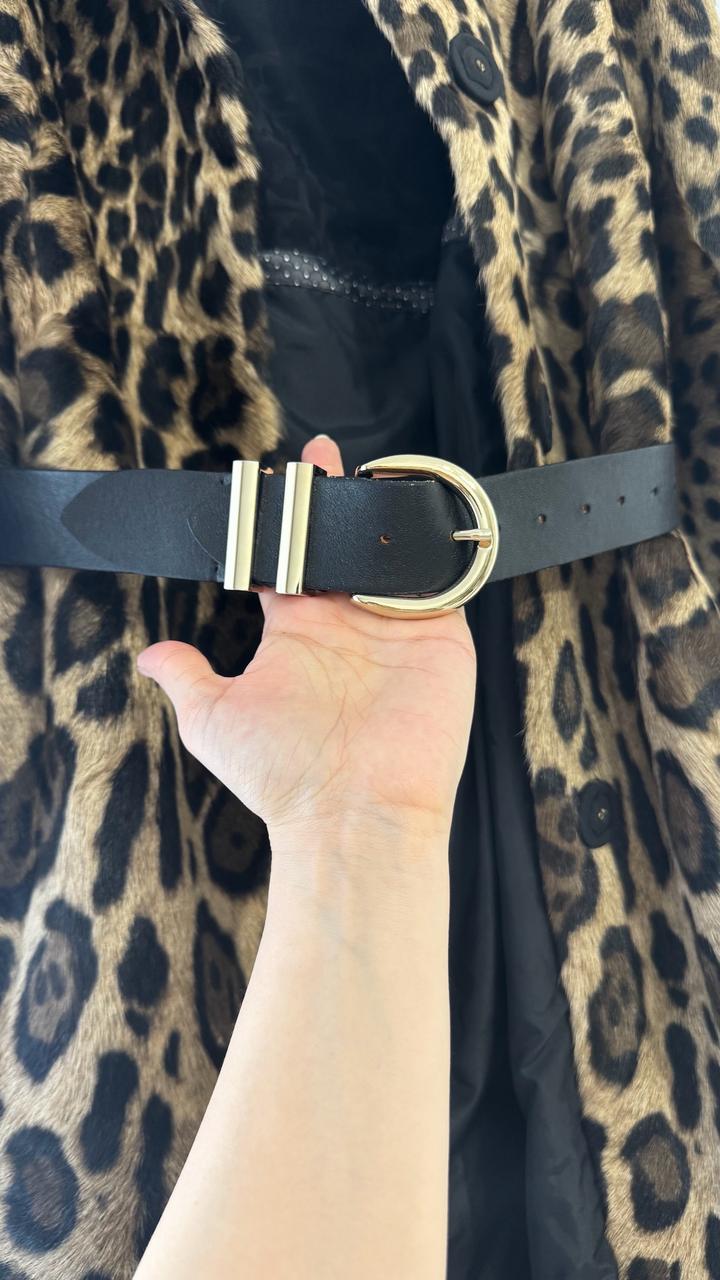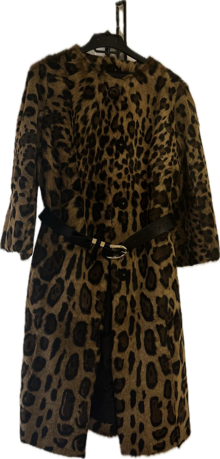 Пальто средней длины с акцентным леопардовым принтом и укороченным рукавом 3/4. Прямой силуэт, застежка на пуговицы, черный ремень подчеркивает талию. Подходит для сезонов весна и осень, хорошо сочетается с базовыми черными вещами. Стиль: casual, smart casual, evening Сезон: весна, осень Артикул: 571082