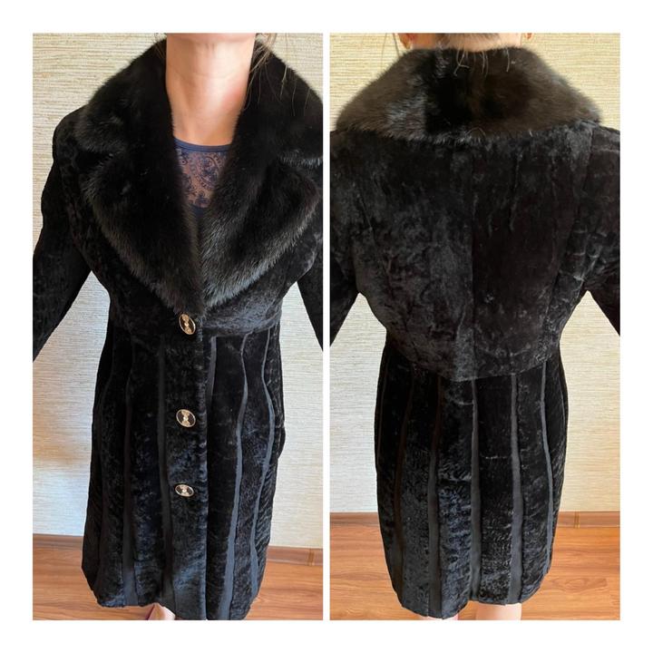 Дубленка стриженный каракуль воротник канадская норка Турция Prima Pelle есть карманы размер подойдёт на 42-44 Артикул: 571131