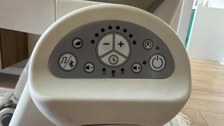Использовали, но в очень хорошем состоянии и чистая после химчистки. Брали за 70к Серая, есть блютус, мелодии и звуки природы для электр качели, и также таймер Артикул: 571242