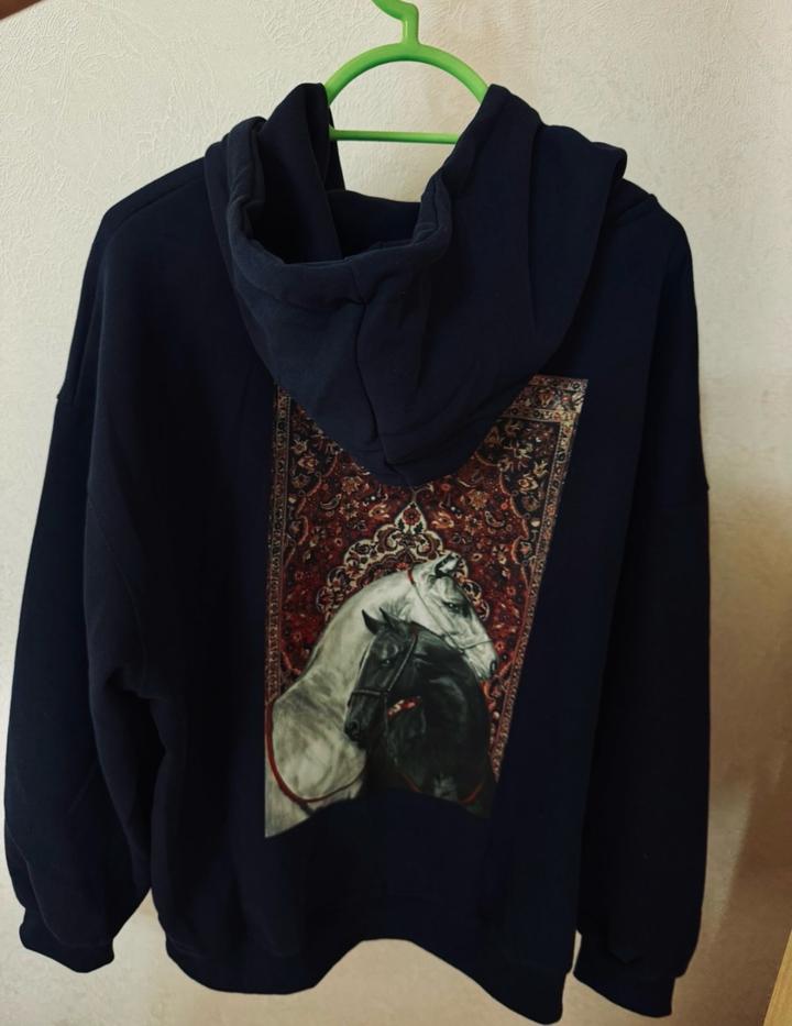 Продам стильное зип-худи оверсайз . Размер универсальный , подойдёт до 50. Плотный, мягкий материал, удобная посадка, эффектный принт с лошадьми. Брала за 30 000, не подошло по размеру , продам за 15 000. Ни разу не надевали, в упаковке. Артикул: 571269