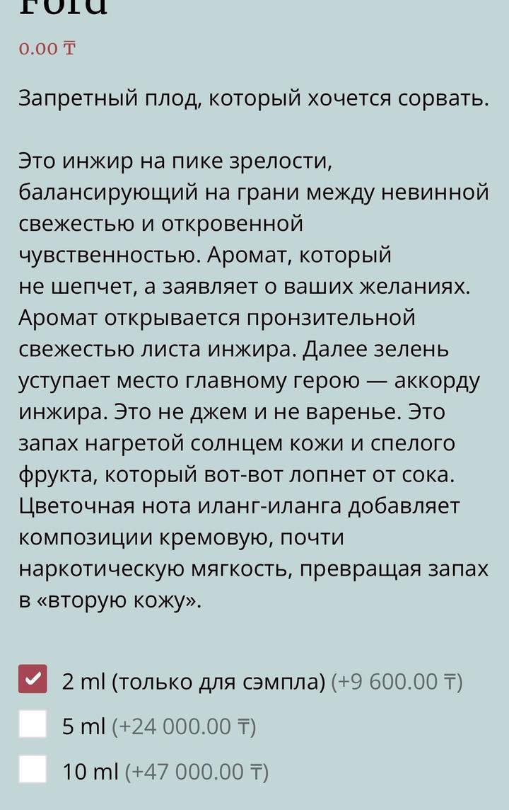 Парфюм Tom Ford “Figue Erotique” - новинка 2026 года. Брала в Scent Room в составе набора в объеме 2 мл (хватает около 20 применений). 2 мл стоили - 9600тг Артикул: 571305