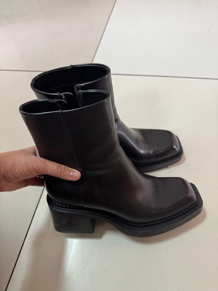 Ботильоны Zara шоколадного цвета ближе к черному, носила один раз, они мне маловаты оказались, на более узкие ноги. Каблук 5 см Артикул: 571327