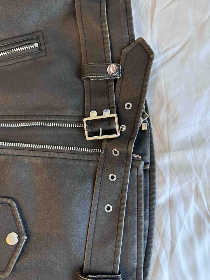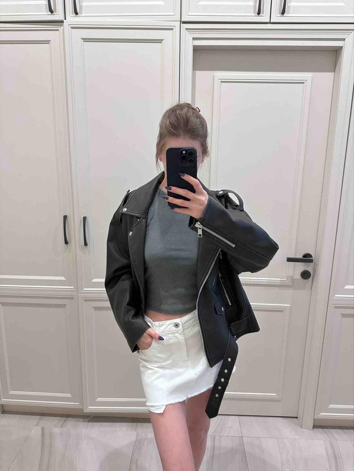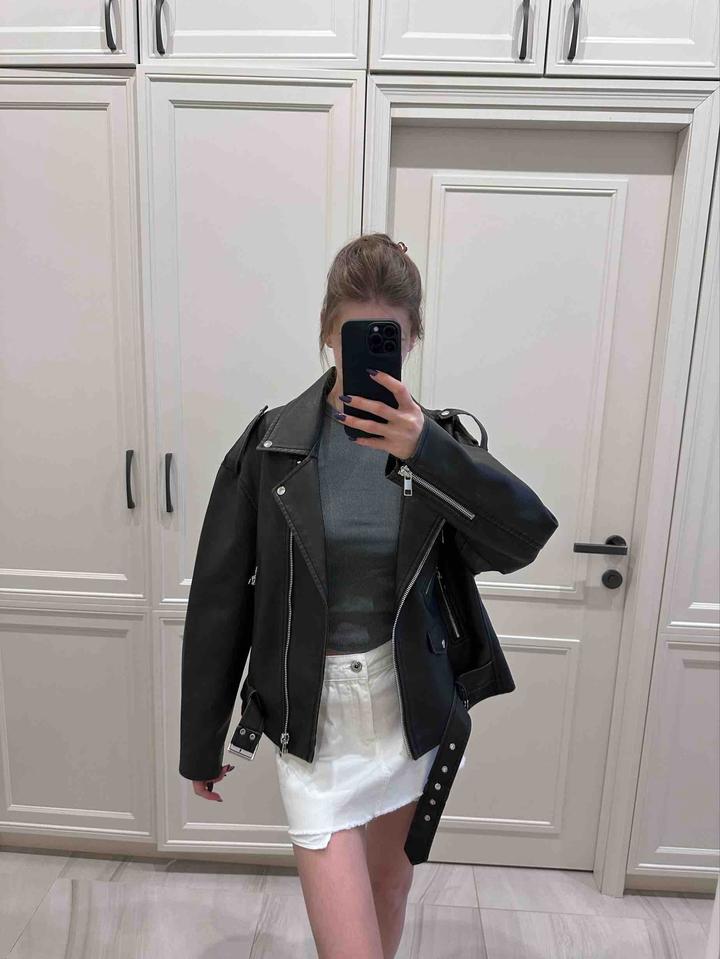 Оверсайз , можно на M/L. Кожаная куртка выполнена из искусственной кожи. Модель прямого кроя. Детали: застежка на молнии, 2 внешних кармана, однотонная подкладка. Артикул: 571328