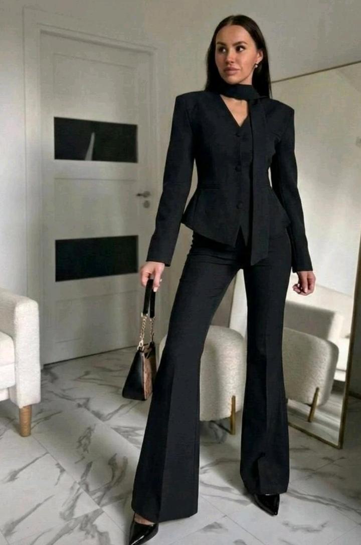 Новый костюм-двойка, подойдёт на размер 42 (xs-s), брюки длинные - можно носить с высоким каблуком или на высокий рост. Хороший состав хлопок, полиэстер, вискоза. Пиджак на подкладке, брюки на пуговице, не тянутся. Ни разу не надевала, лежит без дела, мне немного маловат. Артикул: 571380
