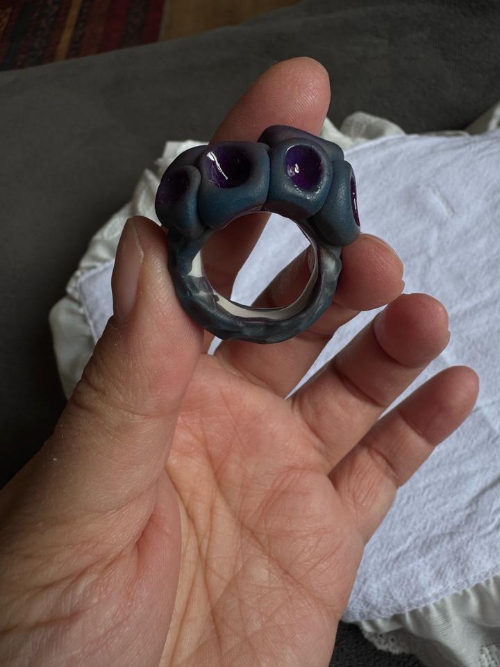 Кольцо «страх трипофоба»))) Полимерная глина, ручная работа. Покупала на ярмарке в Астане. Ни разу не носила. Размер 16 примерно. Артикул: 571494