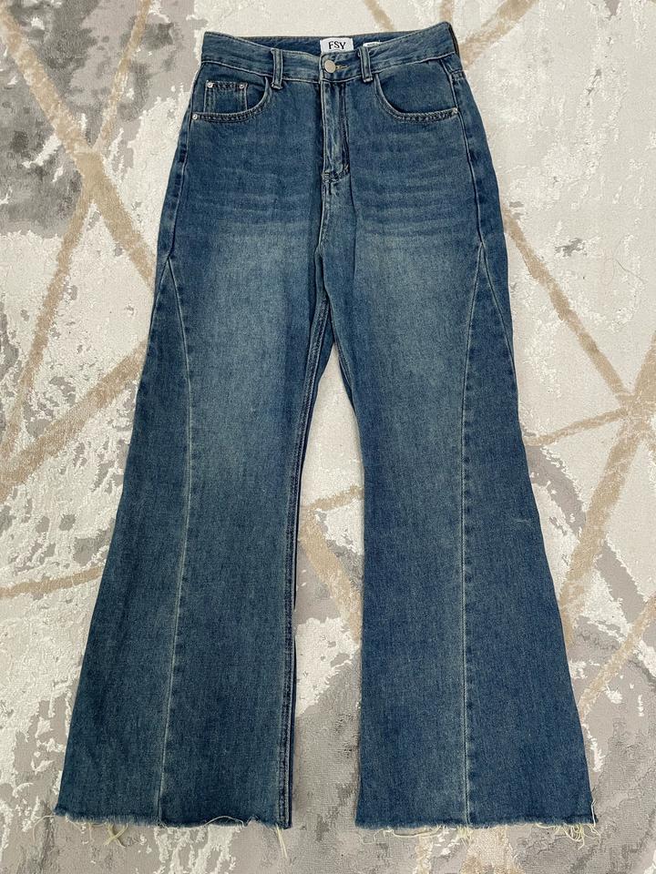 Джинсы клёш FSY, привезены из Кореи. Стильные джинсы с высокой посадкой и красивым расширением от колена. Очень хорошо садятся по фигуре, визуально вытягивают силуэт. Мягкий качественный деним, красивый синий оттенок. Низ с необработанным краем — смотрится актуально и модно. Размер по бирке L, но модель маломерит, поэтому лучше подойдут на M. Оптимально на рост 165–167 см. Состояние хорошее. Артикул: 571611
