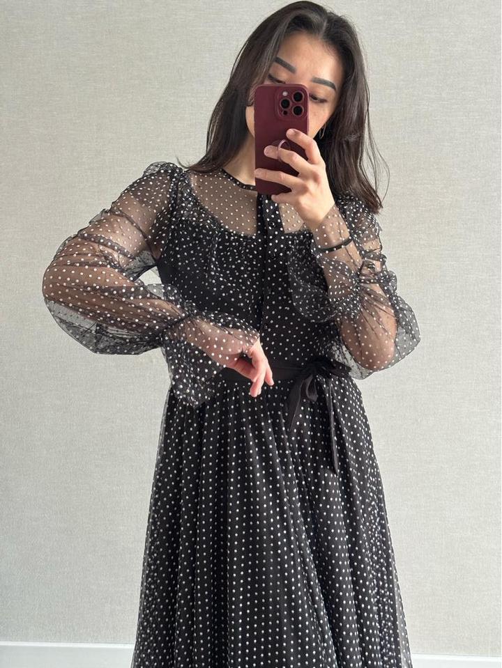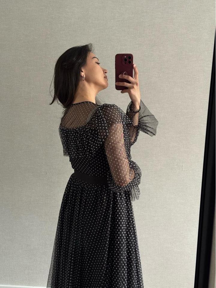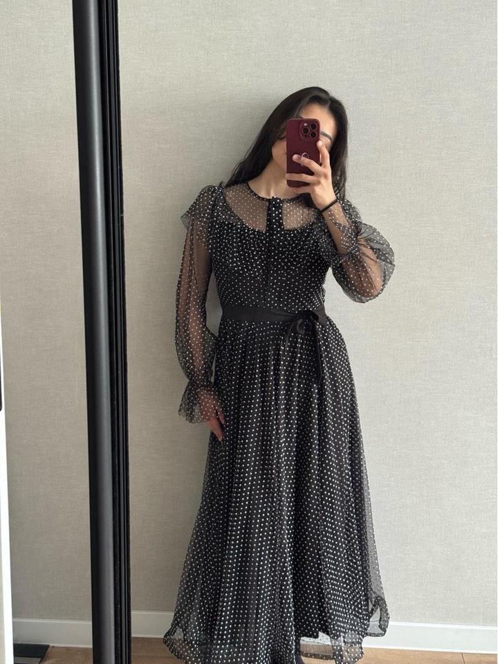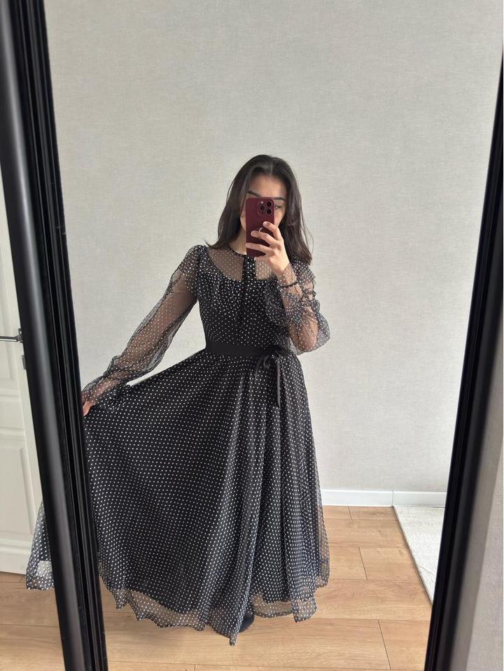 Красивое черное платье в горошек) сейчас в тренде. Размер 46. Спереи пуговицы рабочие, удобно для кормящих. Одевалось 1 раз. В идеальном состоянии 👍🏻 Артикул: 571638