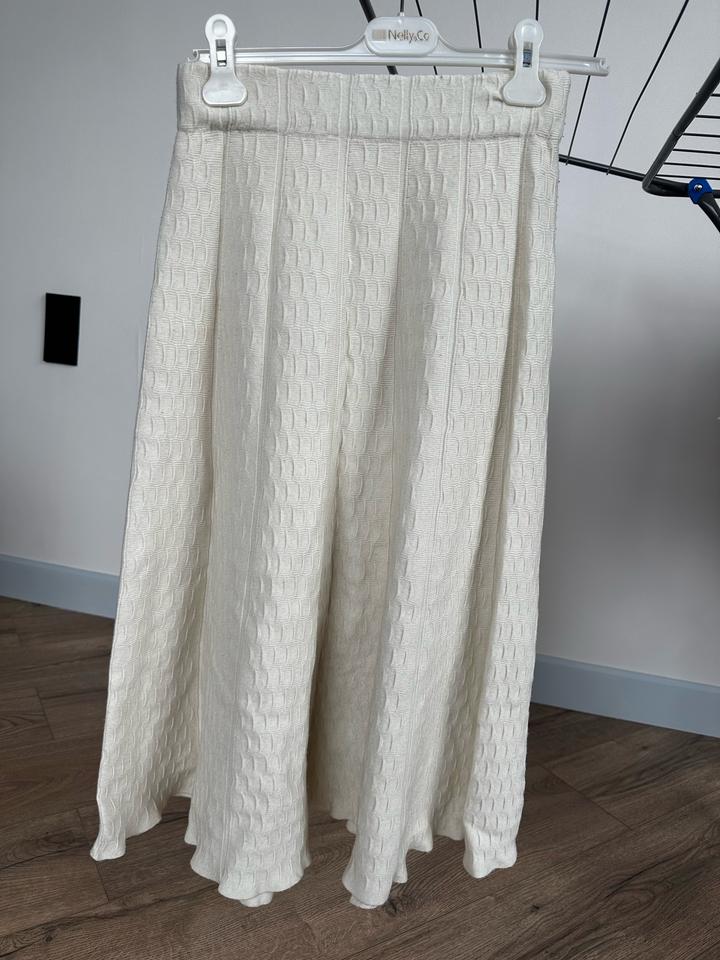 Юбка трикотажная молочного цвета, почти белая Ноунейм Надевала раза 2-3 Состояние нормальное Размер стандарт, пояс на резинке, на размер S-M спокойно подойдет. На осень-зиму-весну идеально Артикул: 571770