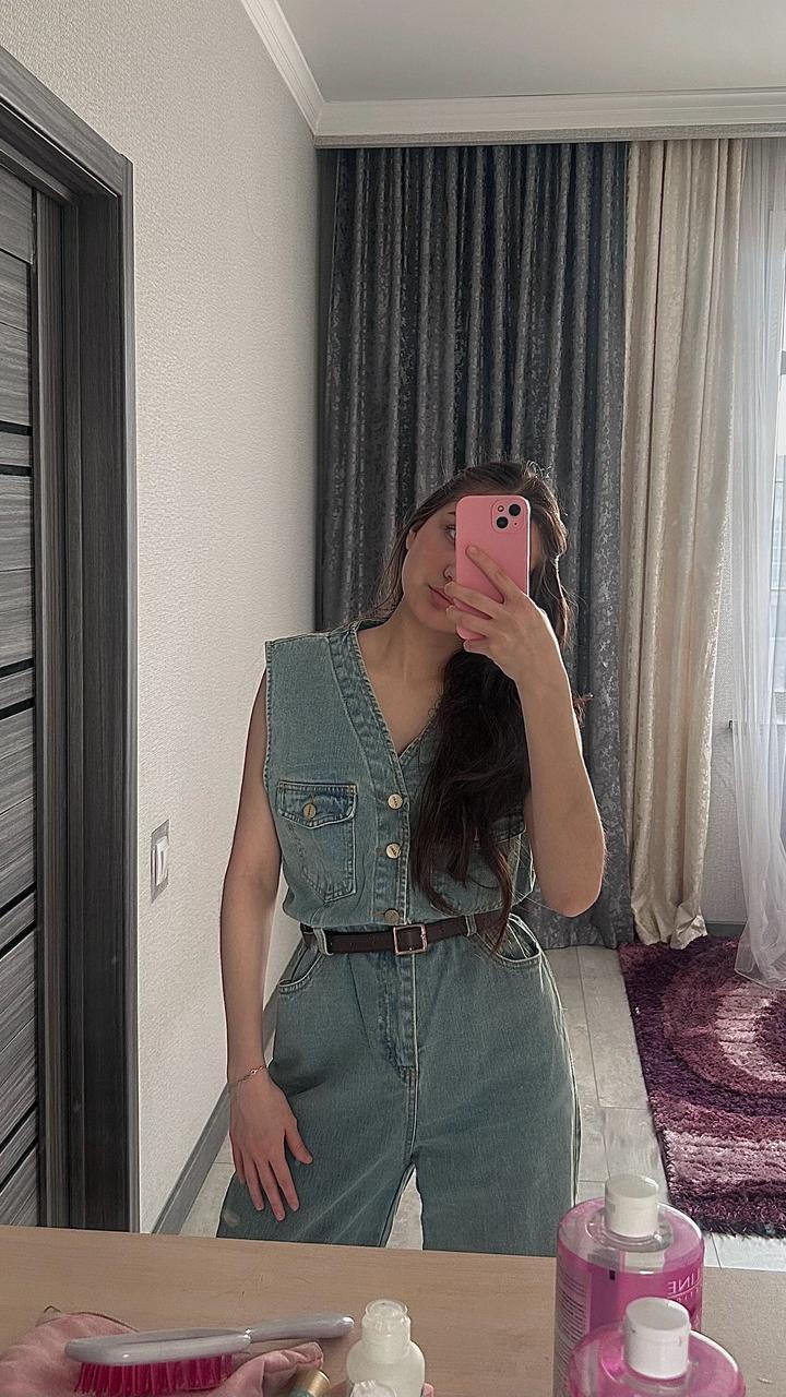 Голубой комбинезон с ремнем, из джинсы Размер стандарт Артикул: 571788
