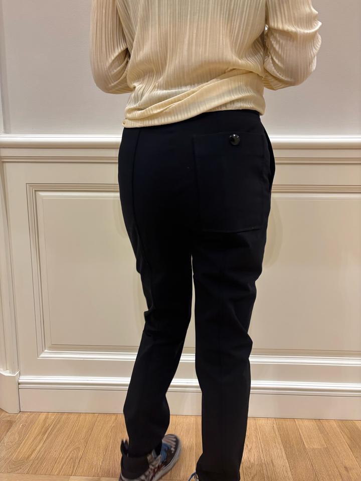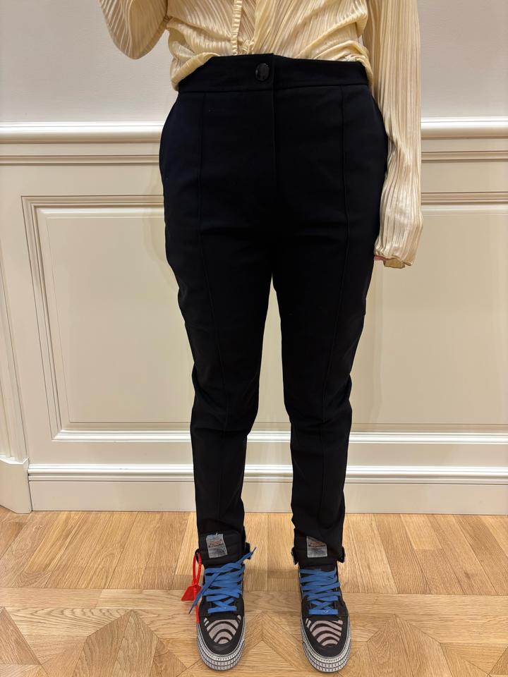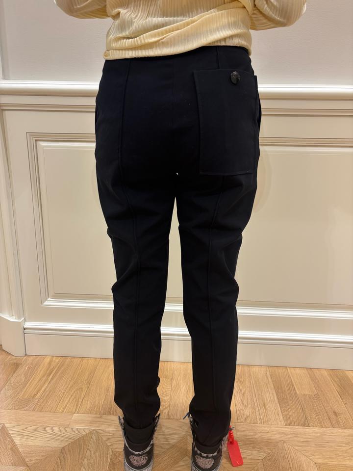Черные брюки стретч, зауженные, высокая посадка, большой карман декоративный, прошитая стрелка с двух сторон, размер 36, подойдет для S. Артикул: 571801