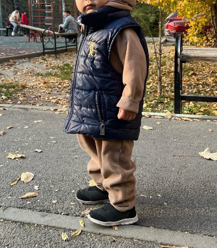 Синяя жилетка на весну для мальчика, размер на 2-3 года, на фото сыну 1,5 года, поэтому чуть большая. Артикул: 571838