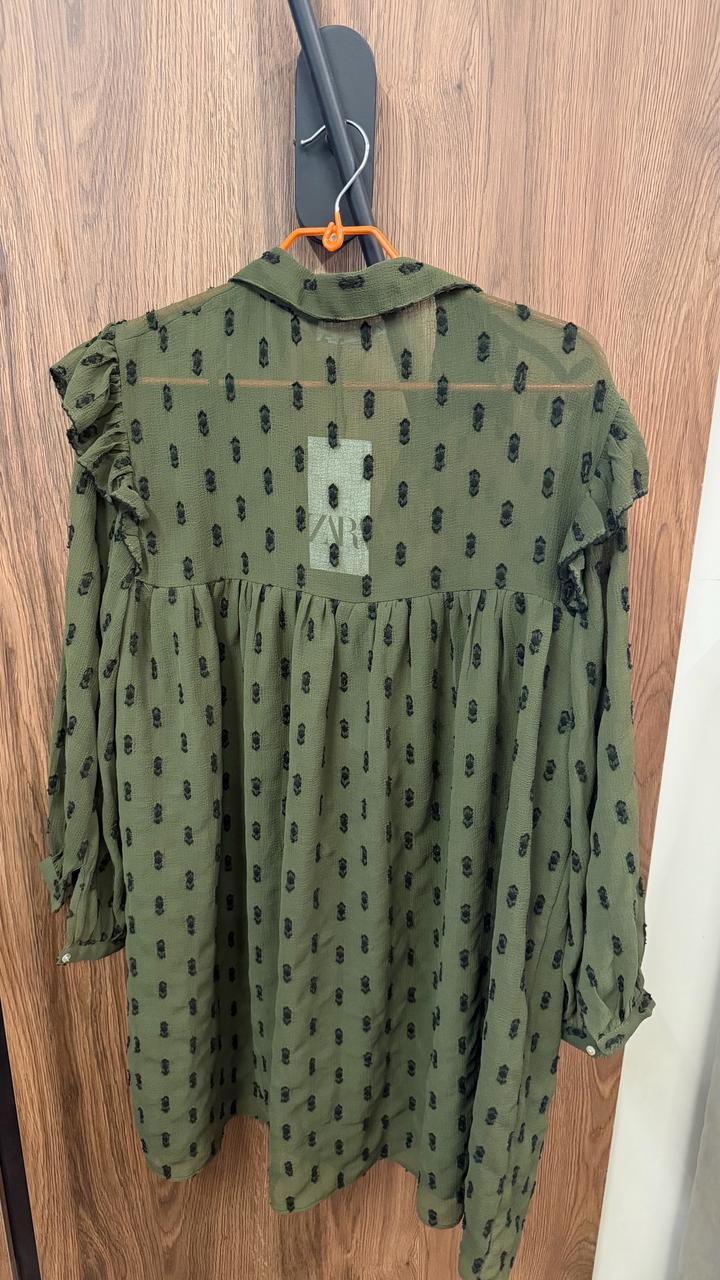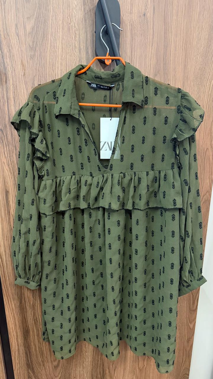Абсолютно новое платье Zara, цвет темно зеленый , размер L. Верхняя часть просвечивает, ниже все идет с подкладом Артикул: 571886