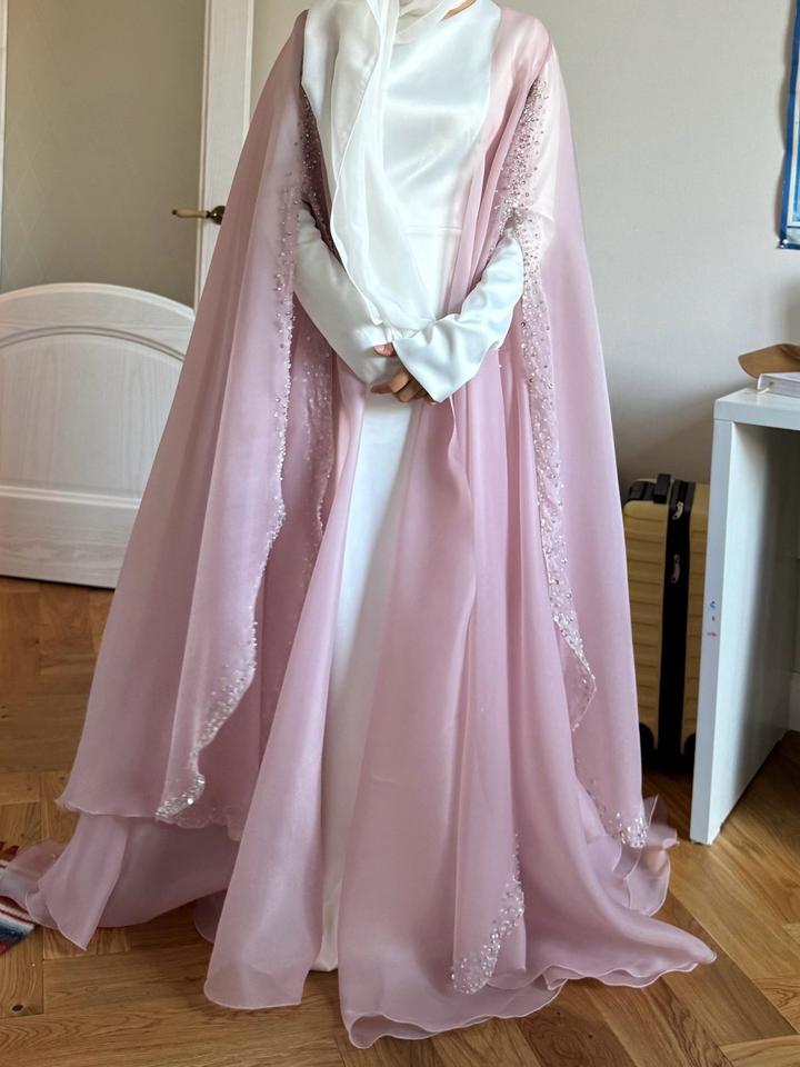 Накидка из органзы с камнями вшитые вручную( каждый камень вливался вручную). Сделали в элитном ателье Azamat Argimbayev. Делали где то ориентировочно за 400-500тыс накидка+платье. Носилось только раз, с химчистки. Отлично подойдет покрытым сестрам которые не могут найти платье на выпускной. Цена 290тыс( можем договорится за меньше). Всё сделано из качественных и лучших материалов🙏. Напишите на ватсап, скинем видео платьям,как на манекене так и на девушке Артикул: 571895
