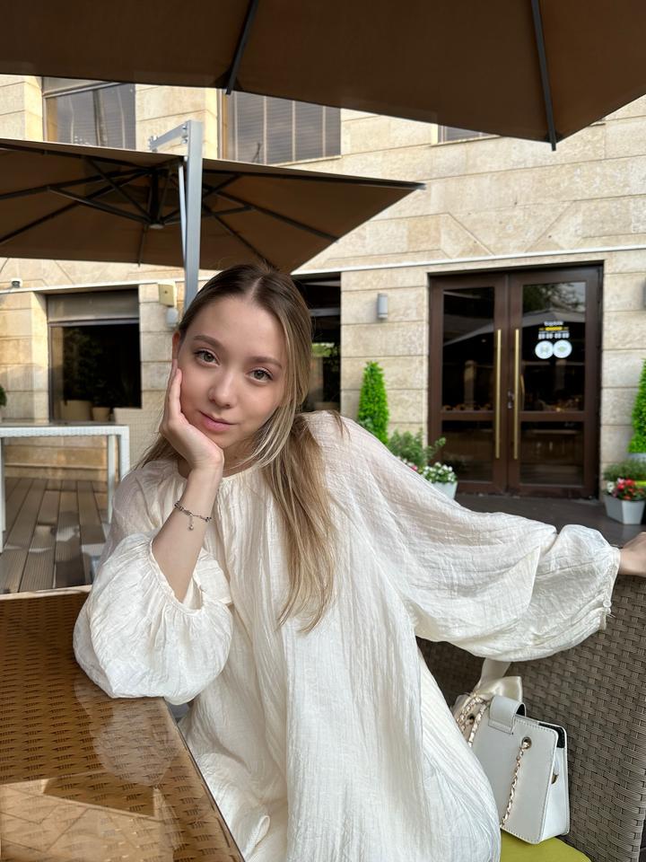 Очень легкая и красивая блузка в корейском стиле. В отличном состоянии, не просвечивает, внутри есть подклад. На лето очень классно, в ней не жарко. Застегивается на пуговицу спереди. Артикул: 571985