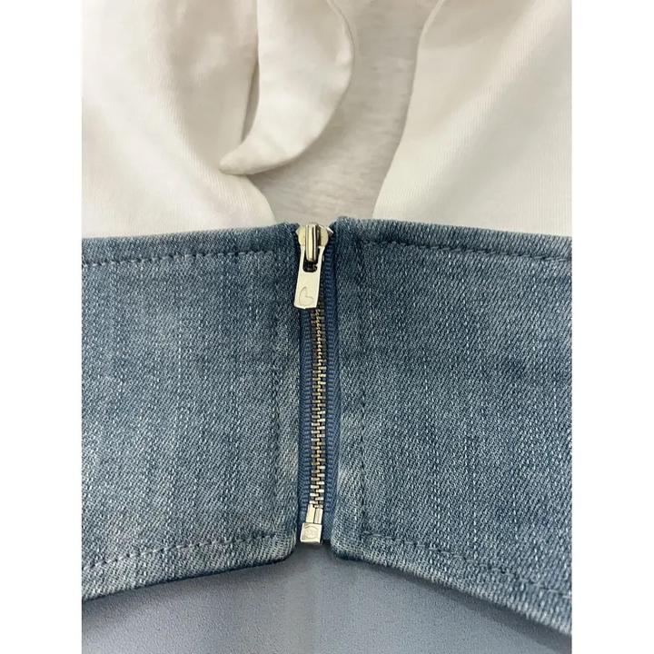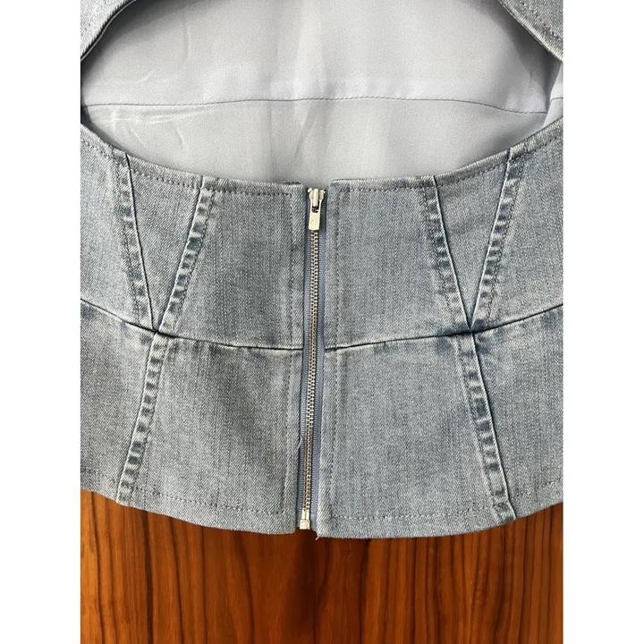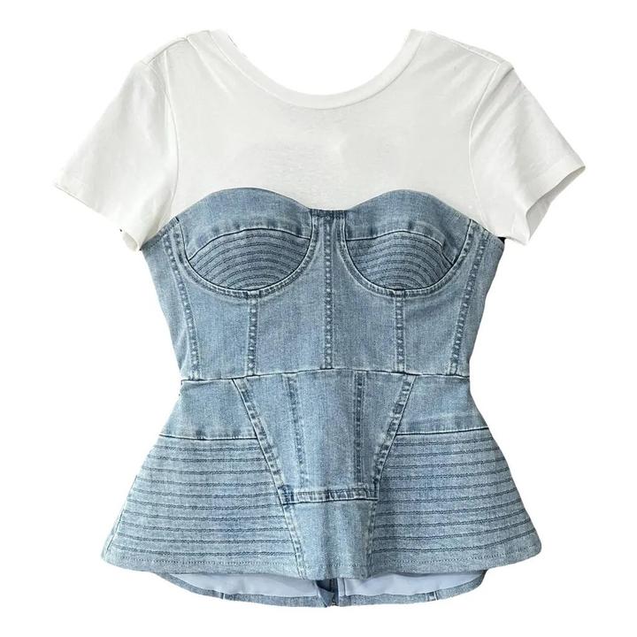 Футболка обманка , крутого дизайна . На весну-лето самое то . Носилось пару раз . Голубая джинса на белом , размеры Хс-С. Единственный минус - чуть прожгла внутреннюю часть корсета утюгом , поэтому такая цена Артикул: 572002