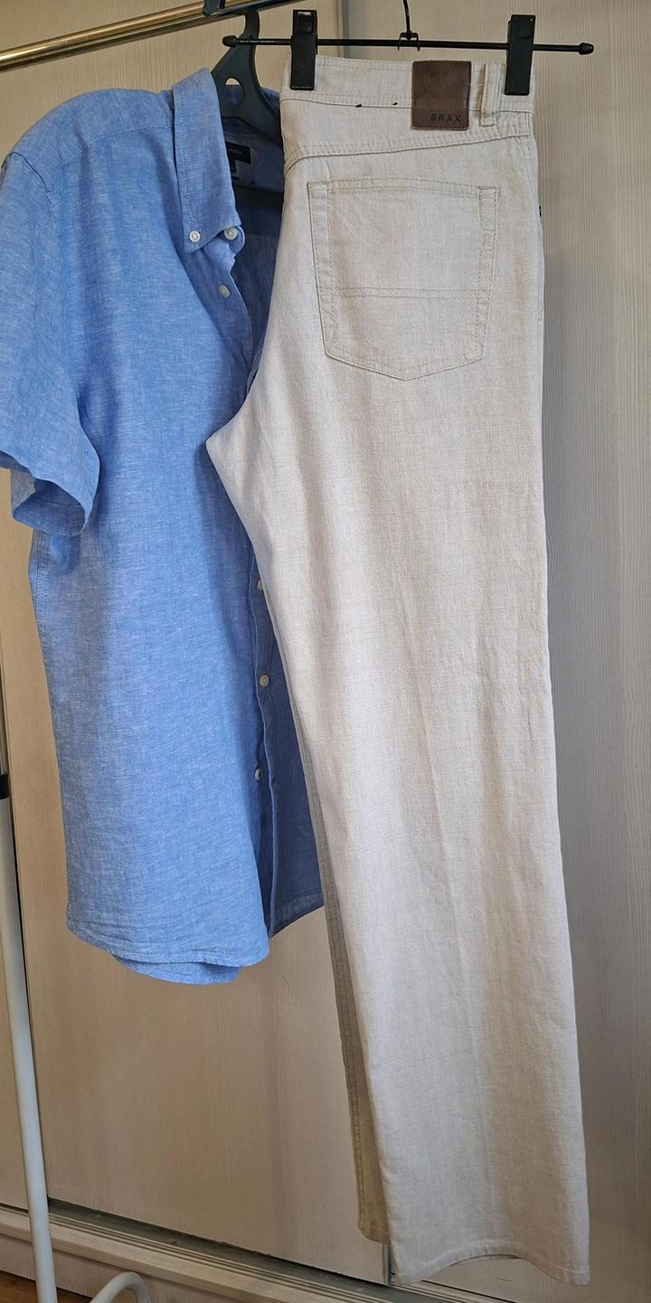 Продам брюки от бренда Brax, модель Carlos, абсолютно новые и идеальные! Сотканы из премиум нитей 56% льна, 42% хлопка и 2% эластна в очень качественной и прочной выделки, ткань тоненькая, дышащая и безумно приятная прикосновением к телу! Идеальный пошив строчка к строчке, очень красивое внутреннее оформление, каждая деталь имеет гравировку бренда Brax, модель прямого кроя! Посадка больше чем, идеальная...в размере сидят будто литые, невероятно идеальное лекало! Мар. W34L34, на 50/52 Артикул: 572017