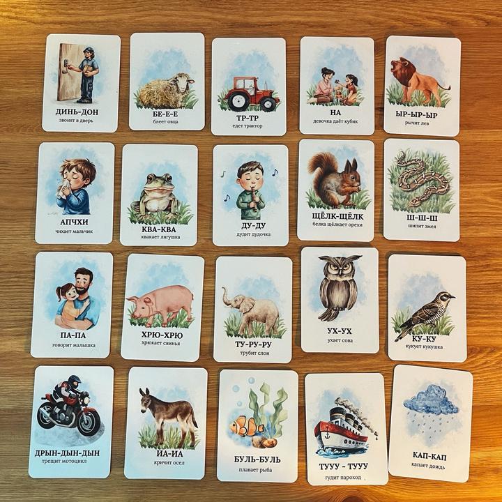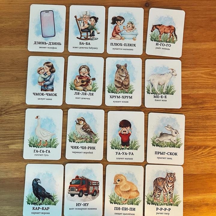 карточки •ЗВУКОПОДРАЖАНИЕ• для запуска речи-