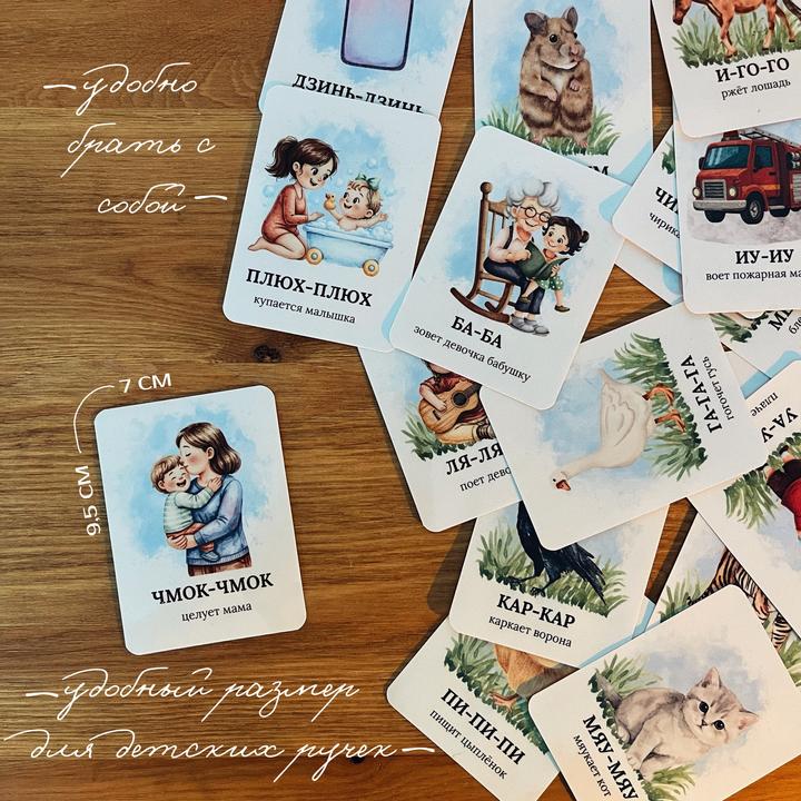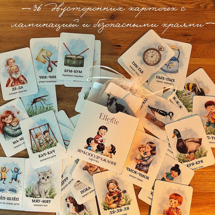 карточки •ЗВУКОПОДРАЖАНИЕ•🌿 • в наборе 36 двусторонних карточек (+7### ### ## ##нятные для ребенка изображения, сделано с теплом и душой🌿🪿 Артикул: 572022