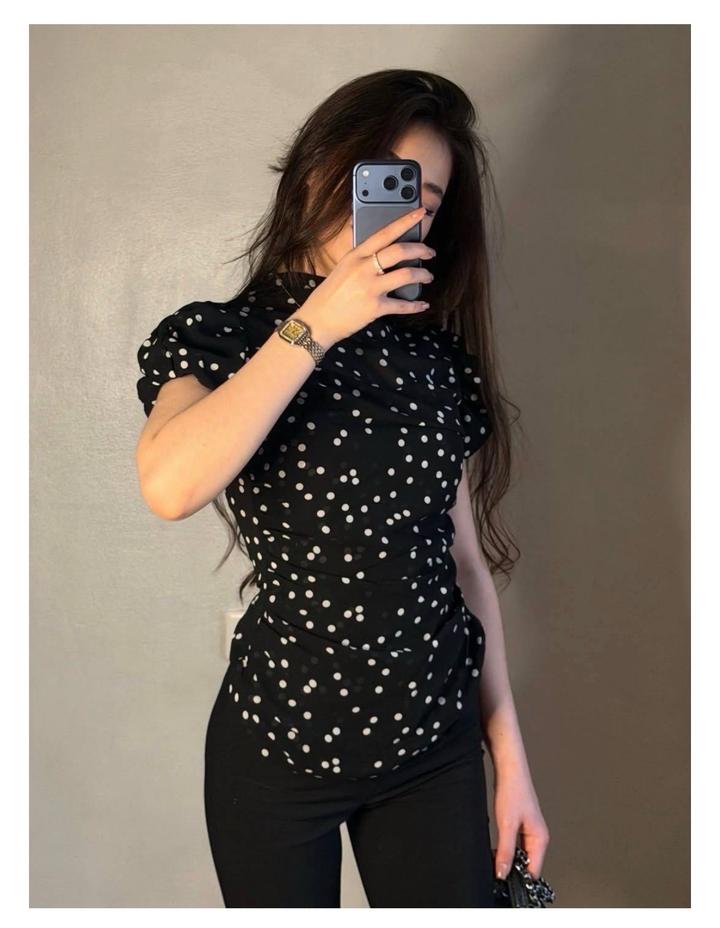 Женская блузка из эластичной капроновой сетки в горошек. Лёгкая, полупрозрачная модель аккуратно облегает фигуру и подчёркивает силуэт. Ткань мягкая, тянется, комфортна в носке. Идеально подходит для повседневного образа, офиса и мероприятий. Материал: капроновая сетка Размеры: стандартные подойдёт 42 44 46 Производство: Пекин • Камера не передаёт 100% точного оттенка цвета. Артикул: 572168