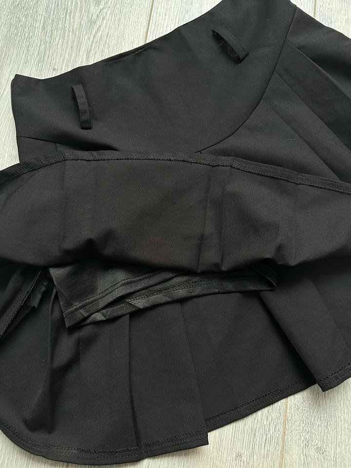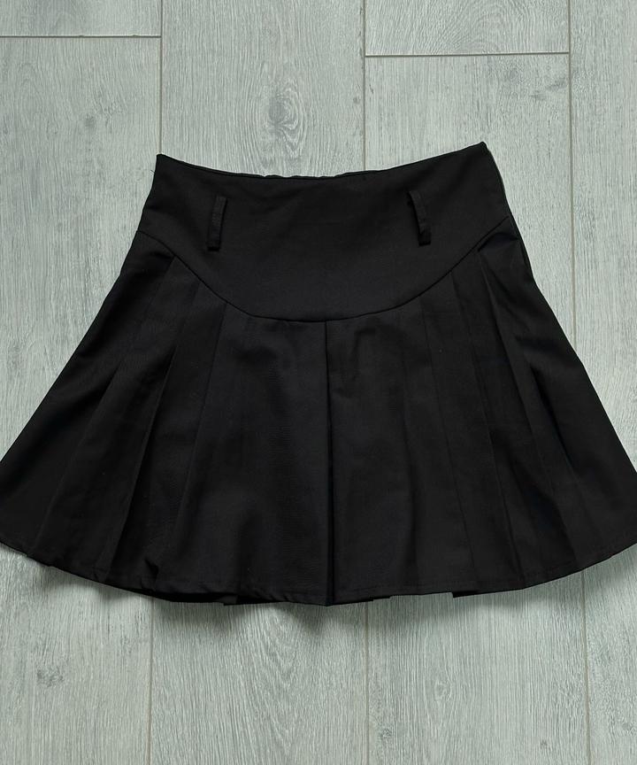 Чёрная юбка с высокой посадкой, аккуратно сидит по фигуре. За счёт складок смотрится красиво Внутри есть шорты. Очень удобно, можно спокойно носить каждый день. Размер S Подойдёт на рост 160–163 Есть петельки под ремень, можно носить с ремешком Хороший базовый вариант: подойдёт и на лето, и в школу. Артикул: 572268