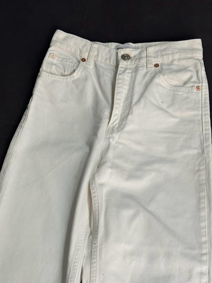 Белые прямые джинсы Zara на высокой посадке, XSXS