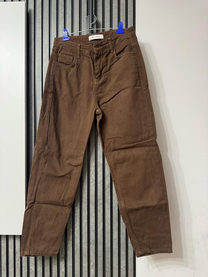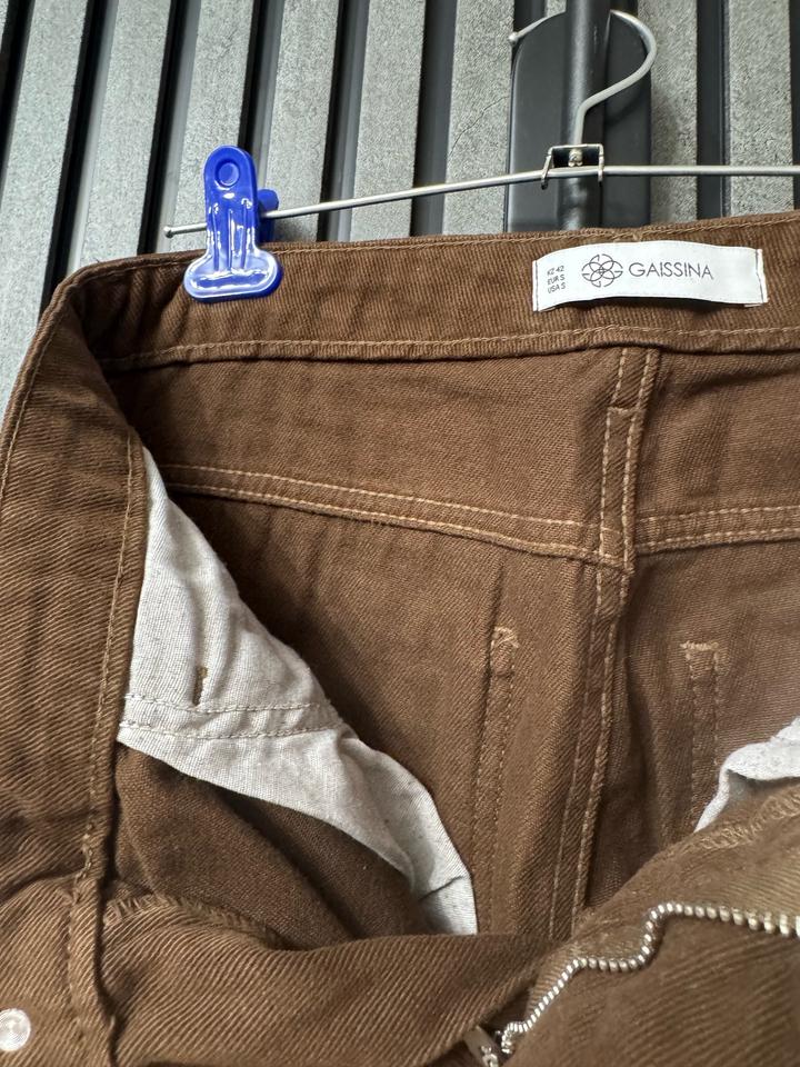 Джинсы коричневого цвета от бренда gaissina, размер 42-S. К низу зауженные, но в бедрах свободные. Средняя посадка. Пару раз в носке. Постиранные, не глажены Артикул: 572343