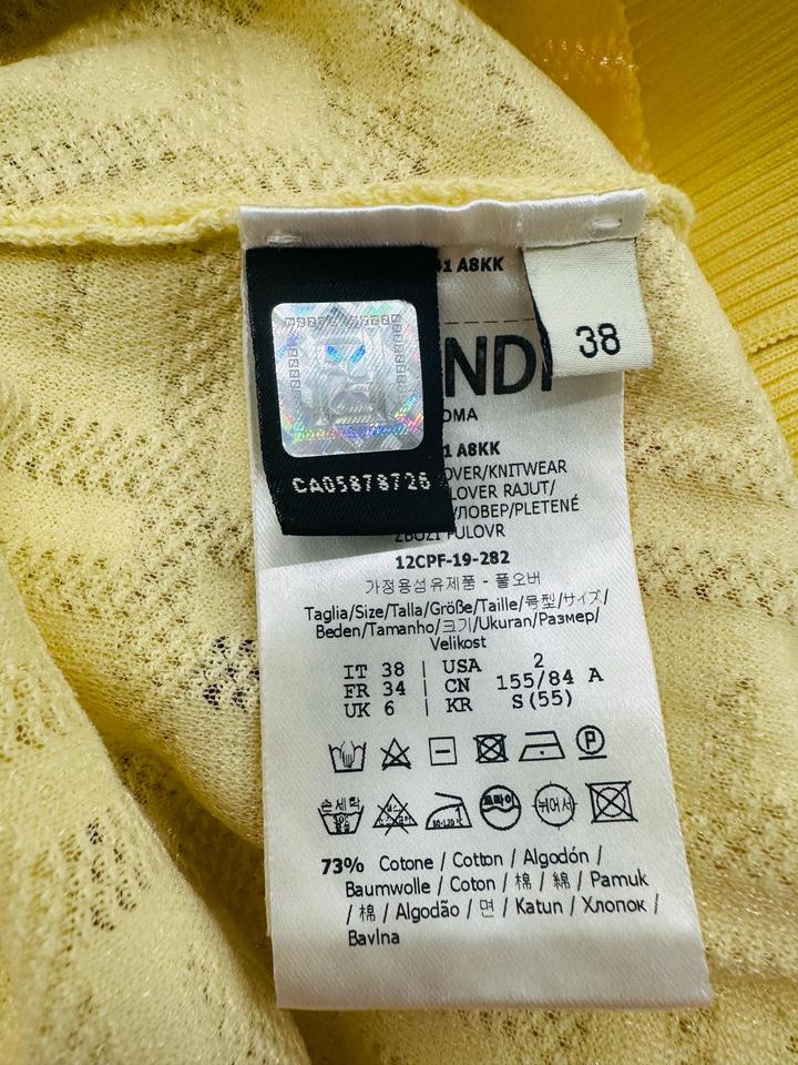 Кофточка Fendi желтого цвета, с фирменной монограммой, в идеальном состоянии, надето пару раз, на размер XS-S Артикул: 572371