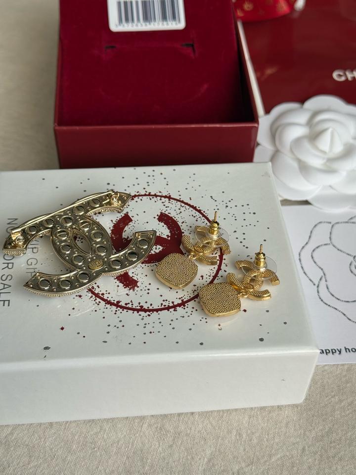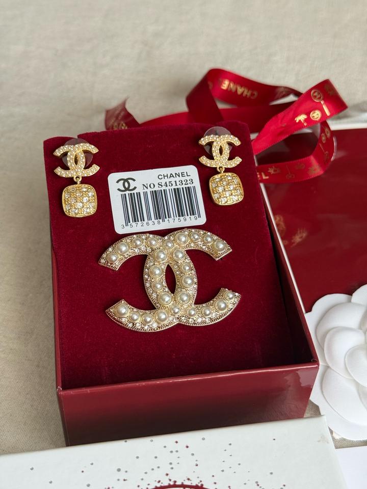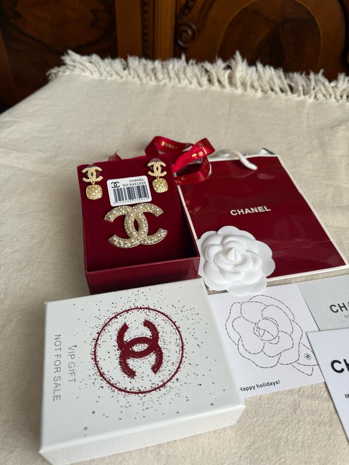 Набор от ШанелБьюти Not for sale! Серьги и брошь! Строго оригинал! Новый, в пленках! В комплекте фирменнная подарочная коробка от бренда, лента, камелия, карточки и пакет! Артикул: 572394
