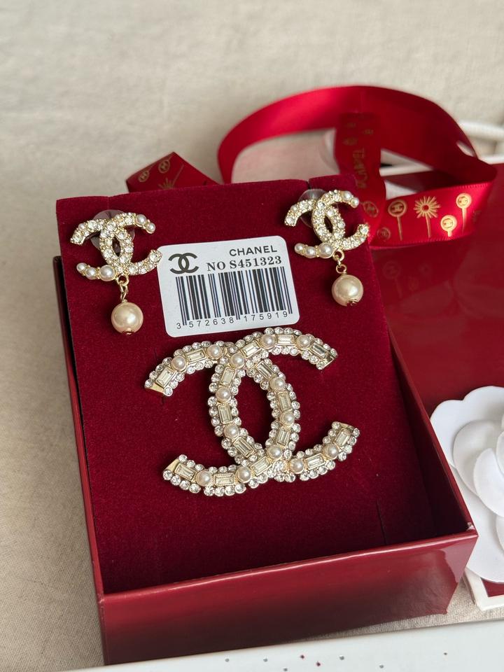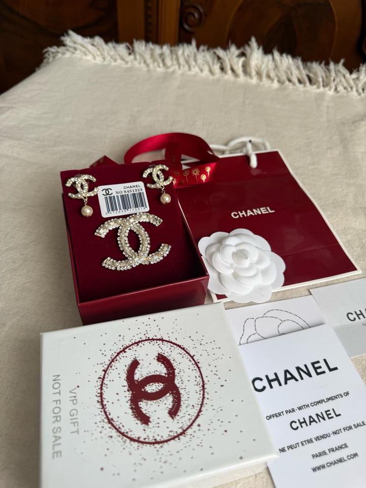 Набор от ШанелБьюти Not for sale! Серьги и брошь! Строго оригинал! Новый, в пленках! В комплекте фирменнная подарочная коробка от бренда, лента, камелия, карточки и пакет! Артикул: 572396