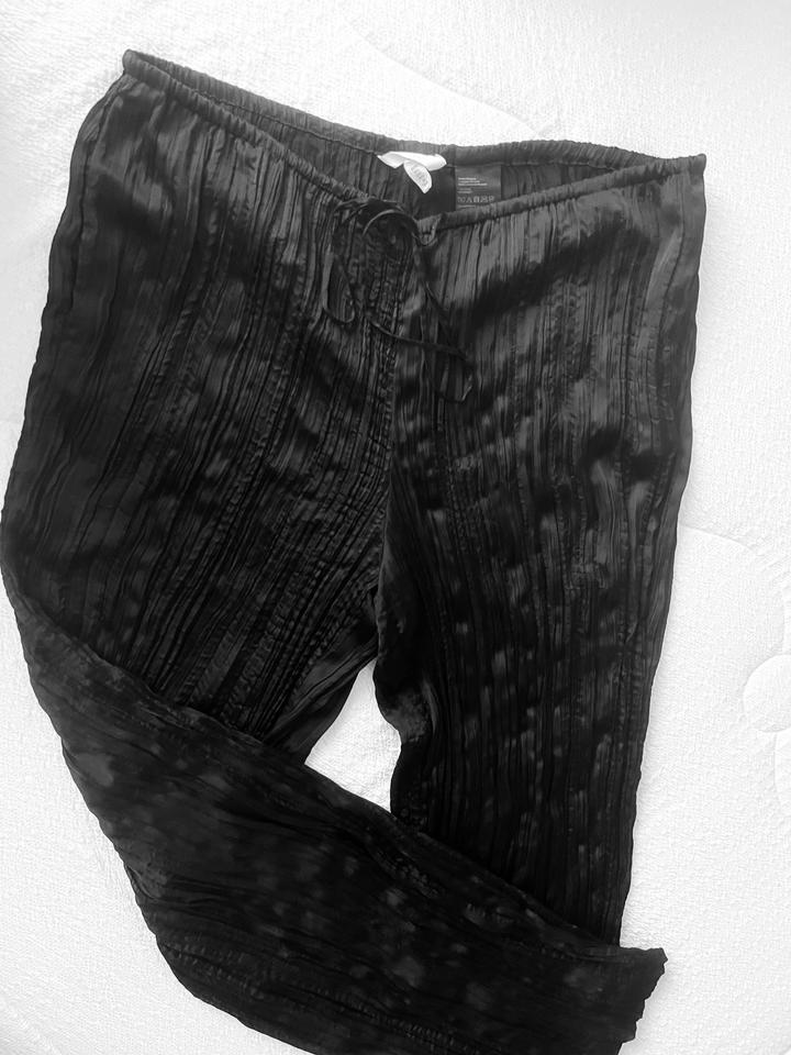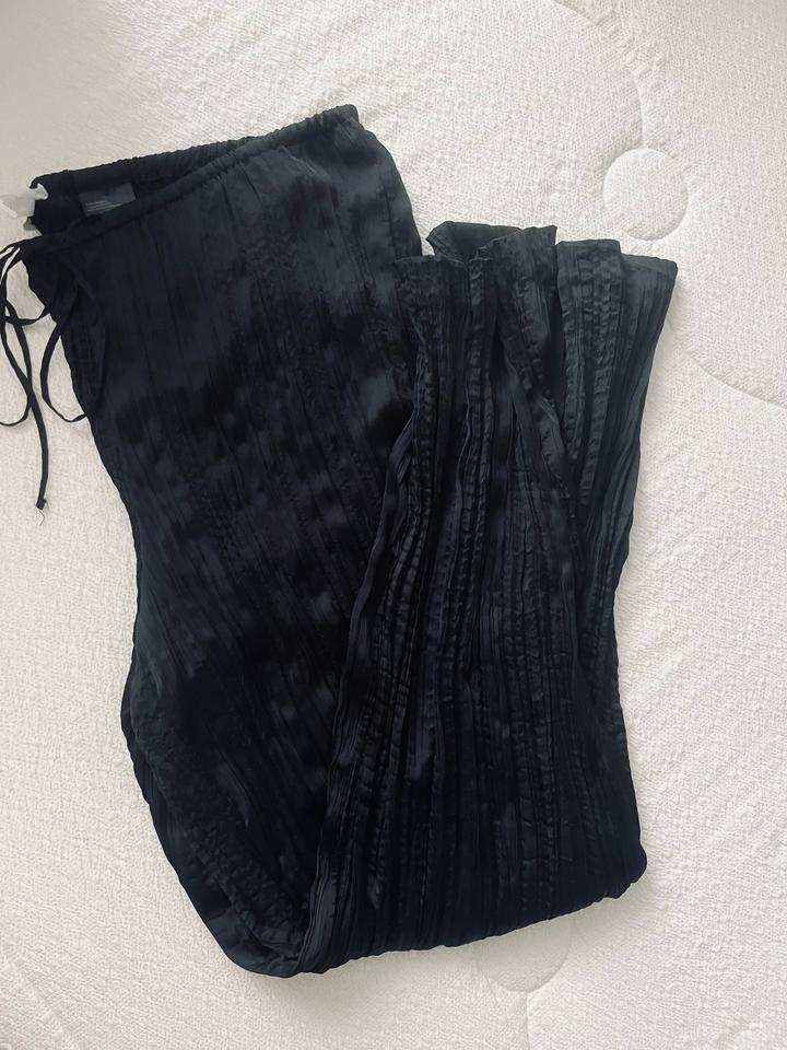 Плиссированные атласные штаны от H&M🖤трендовые, легкие🖤размер L 🖤 состояние отличное 🖤завязываются на шнурки, боковые карманы 🖤 надевала один раз🖤 Артикул: 572479