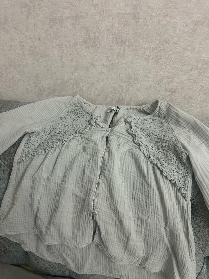 Блузка очень легкая, приятная к телу, воздушный с красивыми узорами. Одевалась мало но есть маленькие следы носки Артикул: 572511