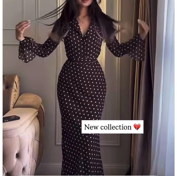 Платья в горошек очень красиво подчеркивает фигуру Размер S Цвет коричневый Артикул: 572556