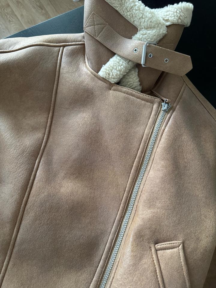 Дубленка-авиатор, на замке, высокий воротник. Без дефектов. Размер S / 42-44. Артикул: 572559