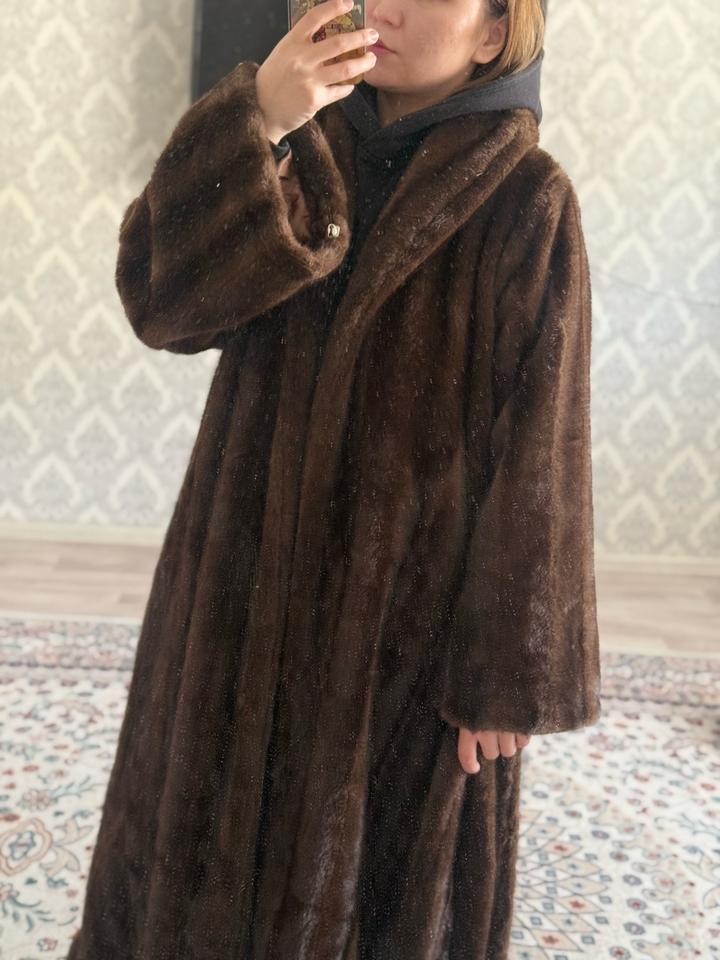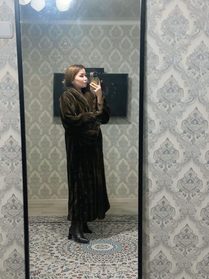 ЭКО шуба длинная в пол , теплая , размер М-Л , на рукавах есть кулички , цвет офигенный. Одевала 1-2 раза , мне длина не подошла Артикул: 572601