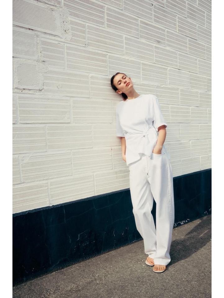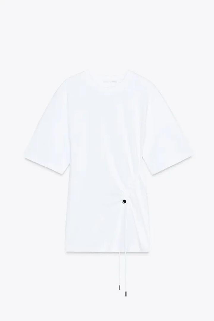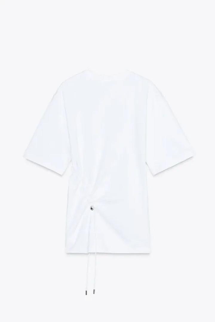 Хлопковая футболка с круглым вырезом и разрезами по бокам снизу. Регулируемые шнурки с фиксаторами спереди и сзади Артикул: 572630