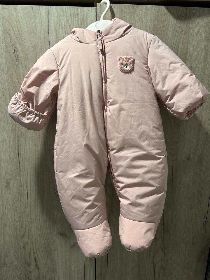 Демисезонный комбинезон на девочку 68 размер, но большемерит. Носили всего месяц. В подарок две шапочки. Артикул: 572672