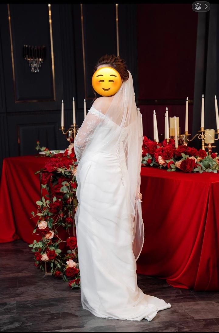 Продаю свадебное платье 🤍 Размер S–M, идеально подойдёт на невысокий рост. Очень аккуратное, лёгкое и комфортное — сидит по фигуре, подчёркивает талию. В подарок — фата и чокер Надевалось один раз Артикул: 572718