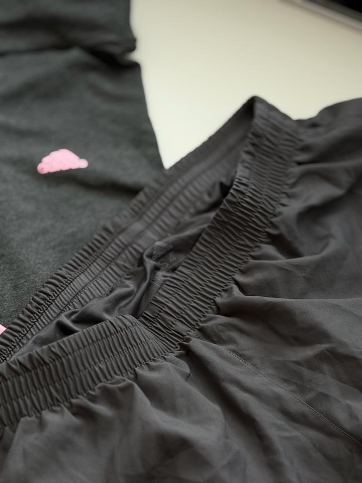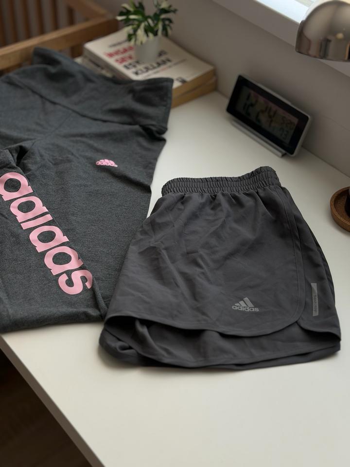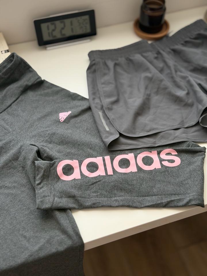 Леггинсы для спорта от Adidas, очень комфортные и приятные к телу, не сковывает движение. Шорты для бега тоже Adidas. Были в носке всего по несколько раз. В отличном состоянии, как новые. Артикул: 572784