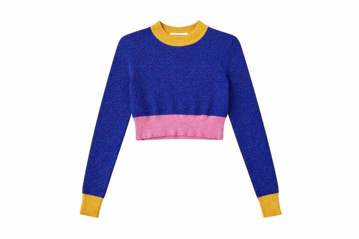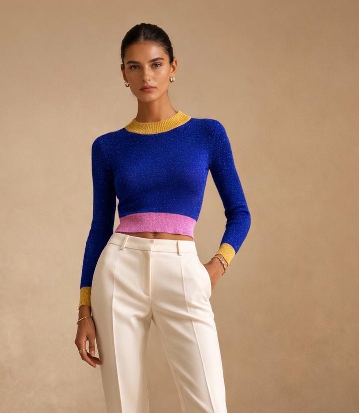 Кроп кофта с элементом колор блок с ниткой люрекса. Красивое и яркое сочетание цветов. Состояние 👌 Артикул: 572799