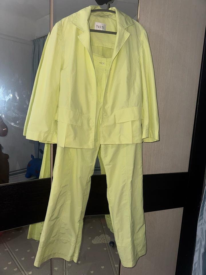 Летний женский костюм двойка от немецкого бренда Tuzzi, который специализируется на современной элегантной одежде. Только один раз одевалась, как новое. Без пятен, без дефектов. Очень классный материял, тонкое дыщяшие. Артикул: 572848