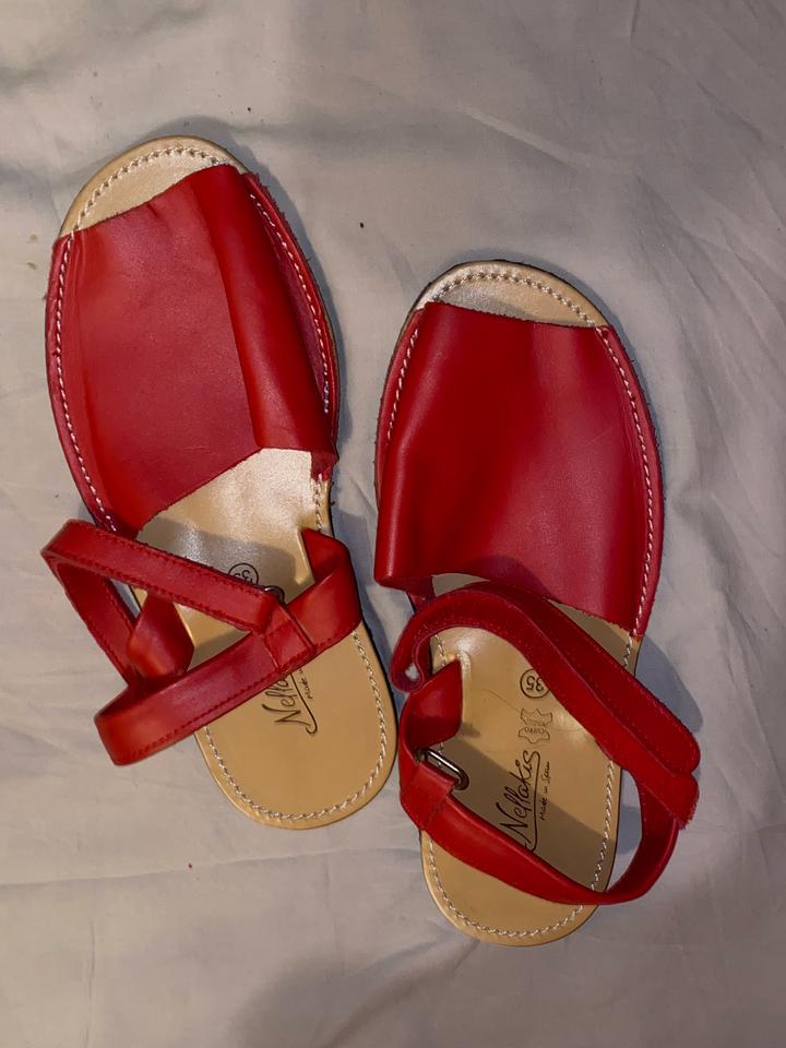 Продам качественные летние сандалии (абаркасы/менорки) от испанского бренда Nellakis. Обувь полностью выполнена из натуральной кожи (есть соответствующая маркировка на стельке). Производство: Испания. Размер: 35 (стелька около 22.5 см). Состояние: отличное, не носили, или носили один раз (не помню). Застежка: Липучка (позволяет регулировать полноту). Подошва прошита, очень крепкая. Кожа дышит, ноге комфортно даже в жару. Артикул: 572889
