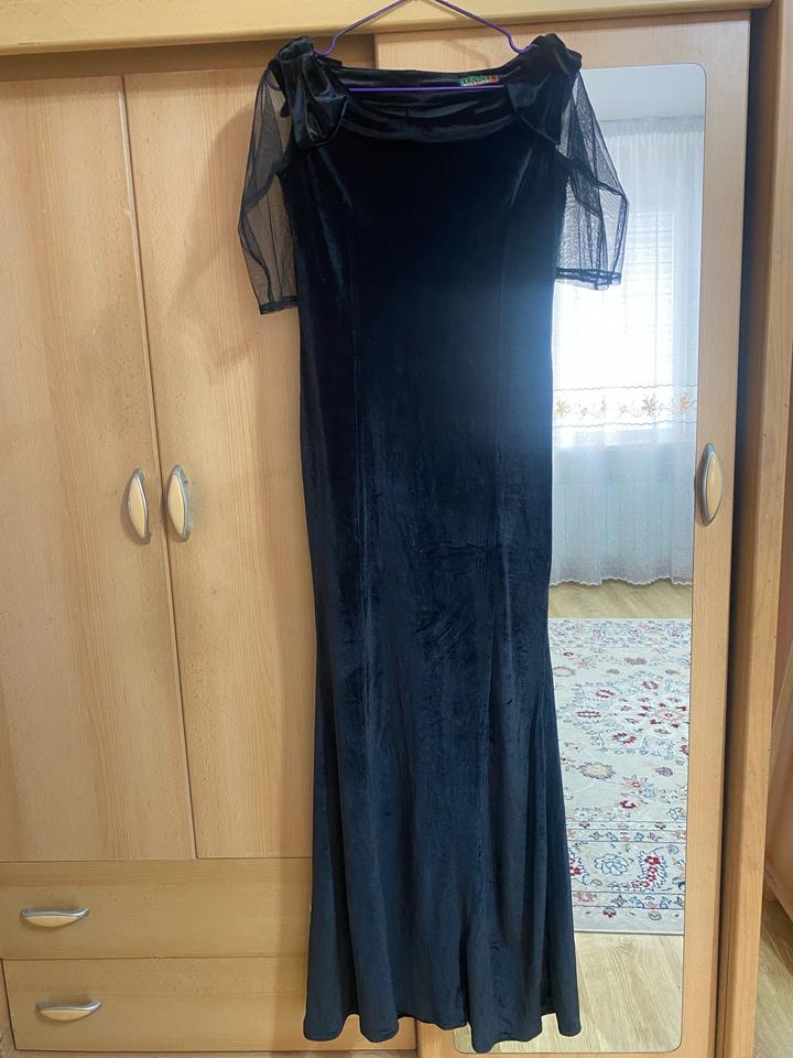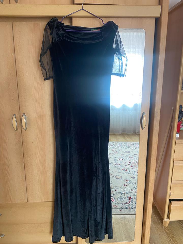 Элегантное чёрное платье в пол из мягкого бархата. Полупрозрачные рукава добавляют лёгкости и делают образ более изящным. Отлично подойдёт для: — вечеринок — торжеств — ужинов — фотосессий Состояние: хорошее, без дефектов Размер: 46 Длина: макси Очень красиво садится по фигуре 💫 Артикул: 572903