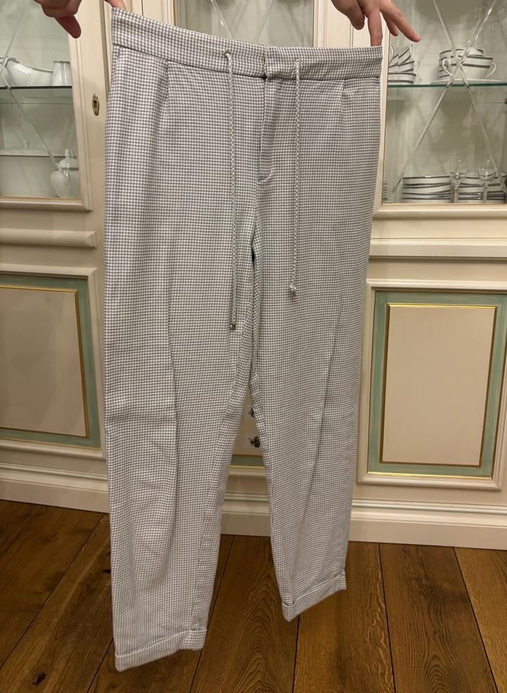 Эти укороченные брюки от Massimo Dutti в мелкую серо-белую клетку станут отличной базой для стильных образов. Модель с эластичным поясом, кулиской и защипами сочетает в себе удобство и элегантность, а подвернутые манжеты добавляют современный акцент. Артикул: 572911