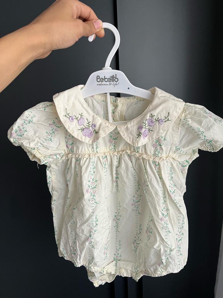 Очень красивый и аккуратный бодик в светлых тонах с вышивкой и милым воротничком, выглядит дорого и утончённо 😍 Идеален для фотосессий, праздников и просто красивых образов на каждый день Размер: 80 см (примерно 9–12 месяцев) Лёгкий, мягкий и комфортный для малышки Удобные кнопки снизу Состояние отличное ✨ Артикул: 572919
