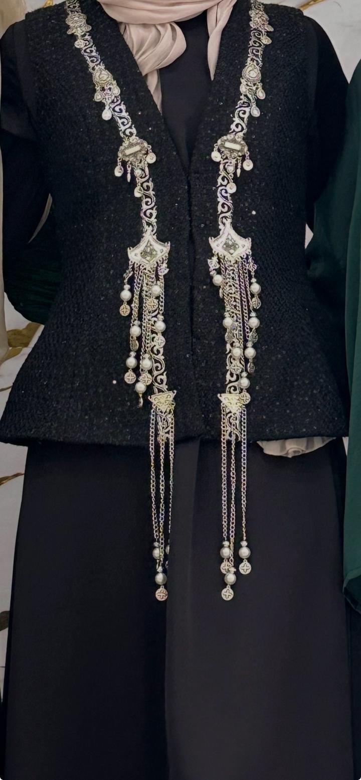 Стильный национальный черный жакет из твида, ручной работы Одела только 1 раз на свадьбу 4 фото в живую Артикул: 572921