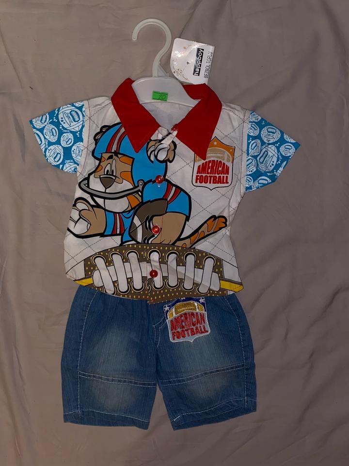 Продам новые стильные комплекты для мальчика. Вещи с бирками, отличного качества (производство Турция). Один за 5.000 тг, оба за 8.000 тг отдам. 1. Джинсовый полукомбинезон с футболкой (Kity & Mity): В комплекте: джинсовый ромпер с милым мишкой и полосатая футболка. Мягкий деним, удобные застежки. 2. Комплект с шортами и рубашкой (Happboy): В комплекте: яркая рубашка с принтом «Американский футбол» и джинсовые шорты. Размер: 1 год (1. 74 2. 86) Артикул: 572932