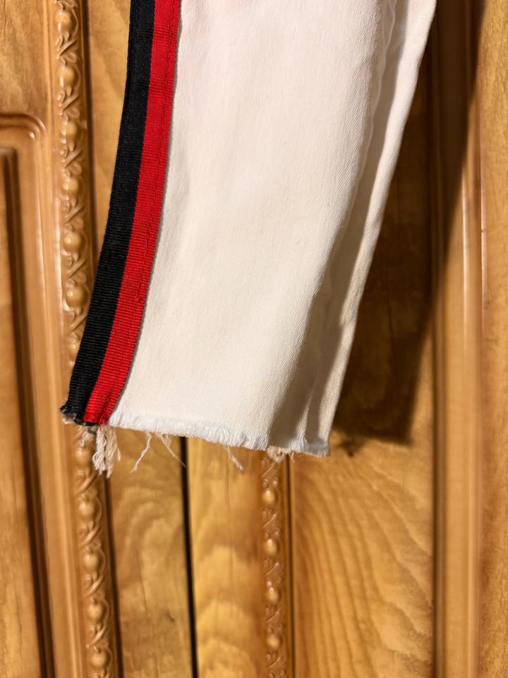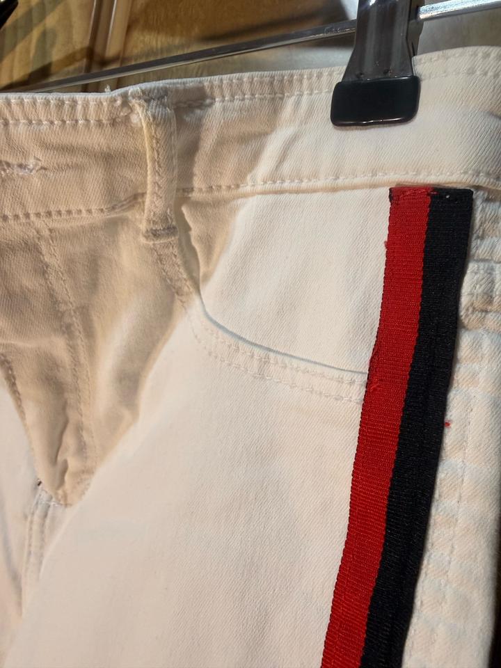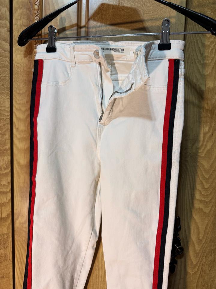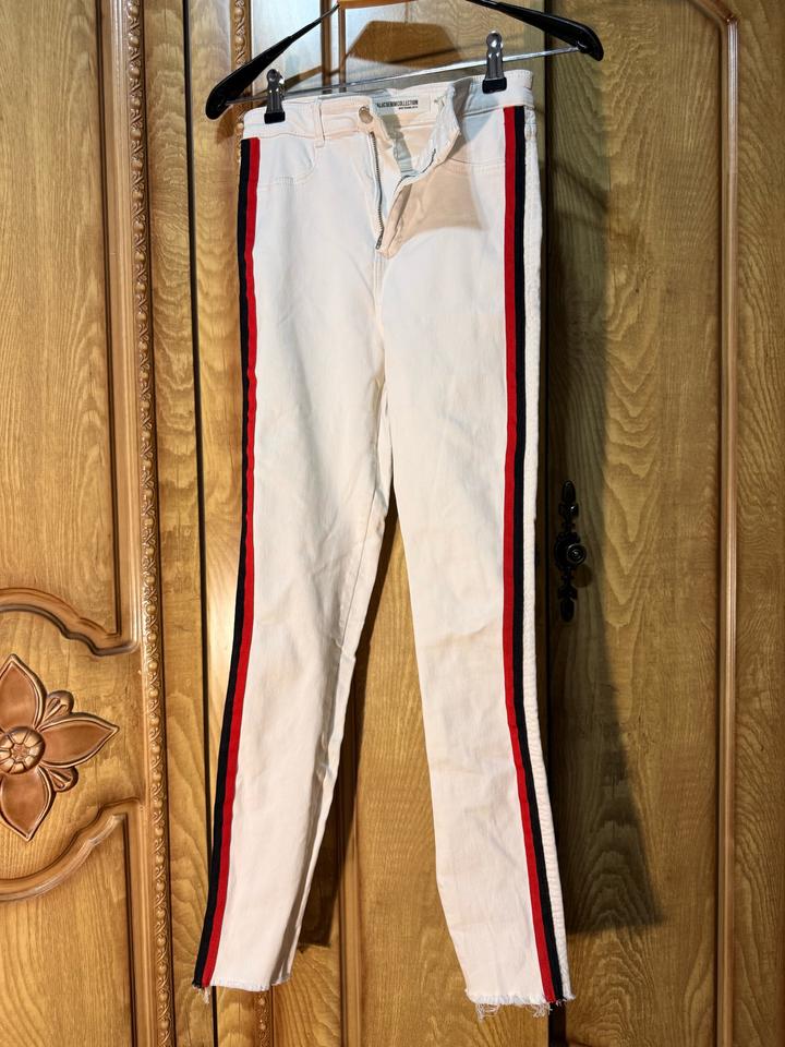 Джинсы Zara Trafaluc 🤍 Очень стильные белые джинсы с лампасами — выглядят дорого и сразу собирают образ : плотный деним, держит форму, тянутся (комфортно сидят по фигуре), высокая посадка, лампасы по бокам (визуально вытягивают ноги 🔥), необработанный край (актуально и стильно) Размер: S (EUR 36) Состояние: отличное Идеальны под базовые образы и чтобы добавить акцент Артикул: 572937